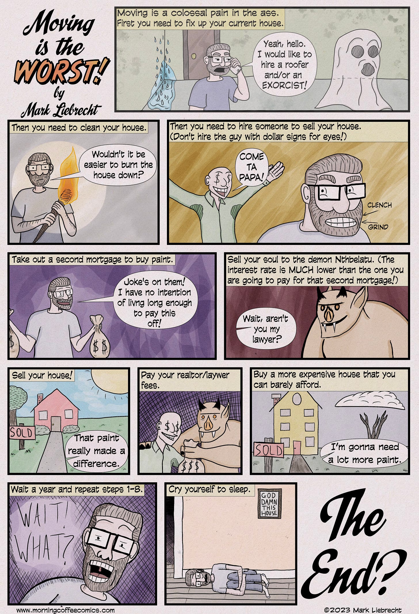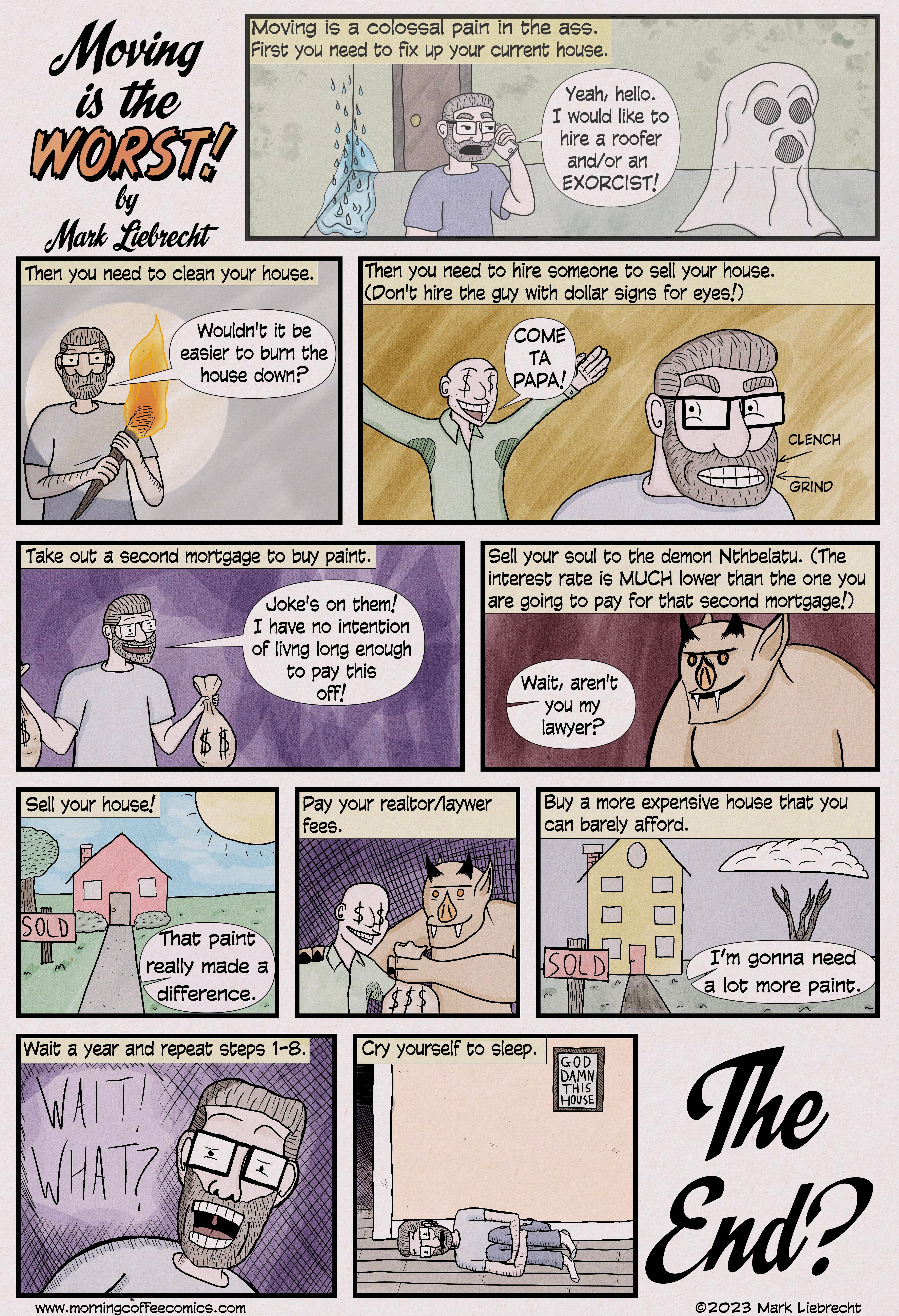 I started drawing that comic back in 2022 after we just sold our house. I was sitting in class, listening to some professor drone on about no one was participating in the class the way he wanted us to. Rather than give in to his little tantrum, I just sat there off screen with my notebook, doodling the page above.